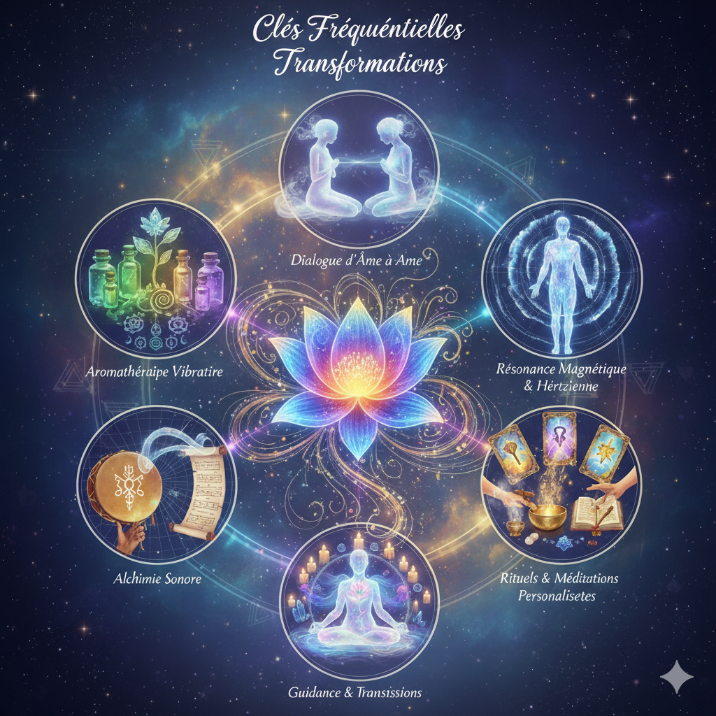 Chaque séance est une création unique, une immersion vibratoire conçue pour harmoniser vos corps subtils et ancrer votre lumière dans la matière. Plus qu'un soin, c'est une guidance profonde où je mets à votre service une palette d'outils sacrés pour faciliter votre métamorphose et les 5 Portes de la Transformation