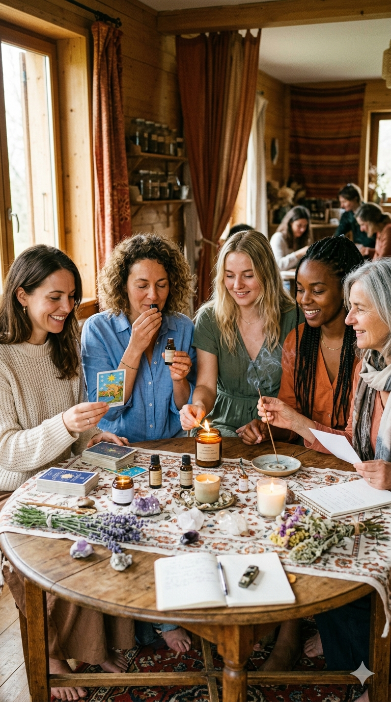 Outils d'accompagnement : Utilisation d'huiles essentielles, oracles et méditations guidées créées sur mesure.