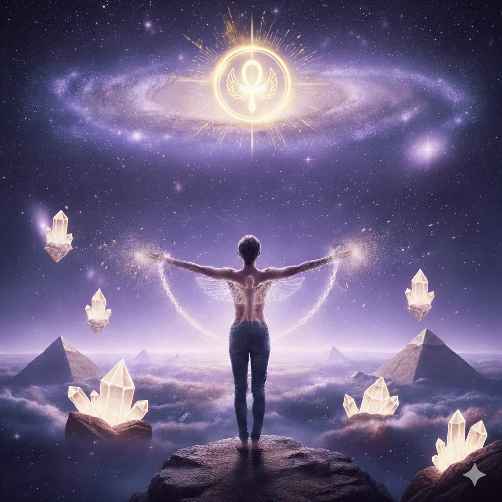 "Briser les chaînes du passé pour accueillir son Soi Divin." Un travail intensif de déprogrammation des peurs ancestrales et des contrats d'âme obsolètes.